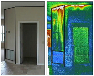 Study led by BAIHP Researcher Danny Parker Papers: Parker, D. S.. "Theoretical Evaluation of the NightCool Nocturnal Radiation Cooling Concept". Submitted to: U.S. Department of Energy. FSEC-CR-1502-05. April 2005. Parker, Danny S. and John R. Sherwin, 2006. “Experimental Evaluation of the NightCool Nocturnal Radiation Cooling Concept: Progress Report: Initial Thermal Performance Assessment of Test Buildings. FSEC-CR-1657-06, Florida Solar Energy Center, Cocoa, Florida. September 2006. Technical Background Using a building’s roof to take advantage of long-wave radiation to the night sky has been long identified as a potentially productive means to reduce space cooling in buildings. This is because a typical roof at 75° F will radiate at about 55-60 W/m2 to clear night sky and about 25 W/m2 to a cloudy sky. For a typical roof (250 square meters), this represents a cooling potential of 6,000 - 14,000 Watts or about 1.5 - 4.0 tons of cooling potential each summer night. Various physical characteristics (differential approach temperature, fan power, convection and conductance) limit what can be actually achieved, so that perhaps half of this rate of cooling can be practically obtained. Even so, careful examination of vapor compression space cooling in many homes in Florida shows that typical homes experience cooling loads averaging 33 kWh per day from June - September with roughly 9.2 kWh (28%) of this air conditioning coming between the hours of 9 PM and 7 AM when night sky radiation could greatly reduce space cooling. A big problem with night sky radiation cooling concepts has been that they have typically required exotic building configurations. These have included very expensive “roof ponds” or, at the very least, movable roof insulation with massive roofs so that heat is not gained during daytime hours. The key element of our new configuration is that rather than using movable insulation with a massive roof or roof ponds, the insulation is installed conventionally on the ceiling. The operation of the system is detailed in the attached schematic. During the day, the building is de-coupled from the roof and heat gain to the attic space is minimized by a white reflective metal roof. During this time the space is conventionally cooled with a small air conditioner. However, at night as the interior surface of the metal roof in the attic space falls two degrees below the desired interior thermostat set point, the return air for the air conditioner is channeled through the attic space by way of electrically controlled louvers with the variable speed. The warm air from the interior then goes to the attic and warms the interior side of the metal roof which then radiates the heat away to the night sky. As increased cooling is required, the air handler fan speed is increased. If the interior air temperature does not cool sufficiently or the relative humidity is not kept within bounds (<55% RH) the compressor is energized to supplement the sky radiation cooling. A dehumidifier is used when temperature conditions are favorable, but moisture conditions are not. The massive construction of the building interior (tile floor and concrete interior walls) will store sensible cooling to reduce space conditioning needs during the following day.